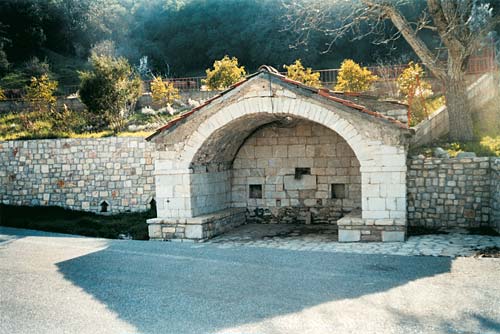 Πάνω στον επαρχιακό δρόμο η όμορφη πετρόχτιστη βρύση προσφέρει το νερό της στον οδοιπόρο.