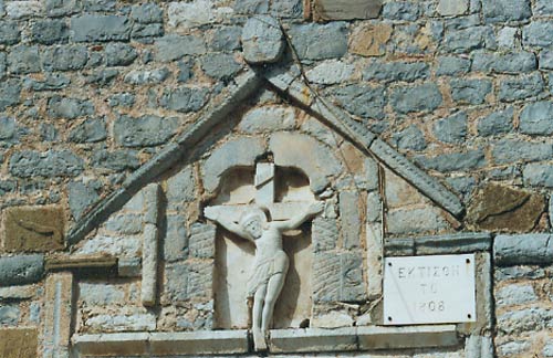 Γλυπτική μαρμάρινη παράσταση του Εσταυρωμένου Χριστού στην εκκλησία των Παμμεγίστων Ταξιαρχών.