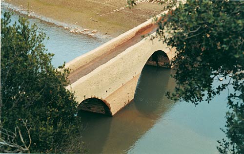 "Της Κυράς το γεφύρι", παλαιά γέφυρα στη λίμνη του Λάδωνα. Τον περισσότερο χρόνο καλύπτεται από το νερό της λίμνης.