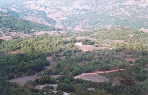 Τα αμπέλια. Ένας μικρός κάμπος ανάμεσα στο Σαρακίνι και τη Λυσσαρέα. Στο κέντρο διακρίνεται η εκκλησία της Αγίας Τριάδας, η Επισκοπή όπως είναι γνωστή.