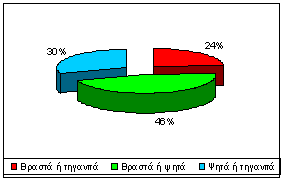 24%, βραστά ή ψητά 46% και ψητά ή τηγανιτά