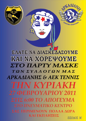 χρονιά ο όμιλος τένις της ΑΕΚ Τρίπολης θα διοργανώσει αποκριάτικο