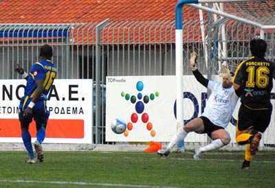 μπλόκαρε ο Συμεωνίδης, ενώ στο 11' δυνατό σουτ του Αναστάζιο πέρασε