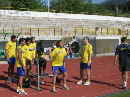 Σήμερα το πρωί, οι παίκτες έκαναν βάρη και ασκήσεις ενδυνάμωσης, ενώ