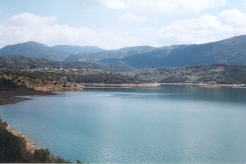 Άποψη της τεχνητής λίμνης του Λάδωνα. Διακρίνεται το χωριό Μουριά.