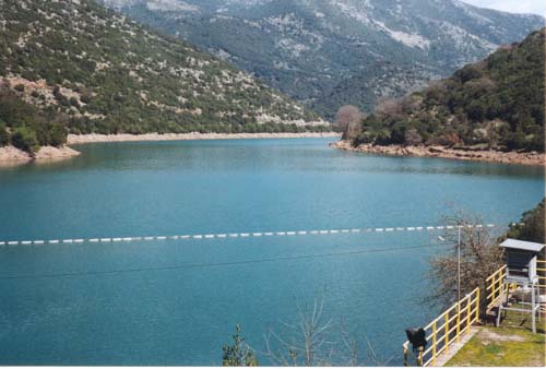 Άποψη της τεχνητής λίμνης του Λάδωνα, από το φράγμα.