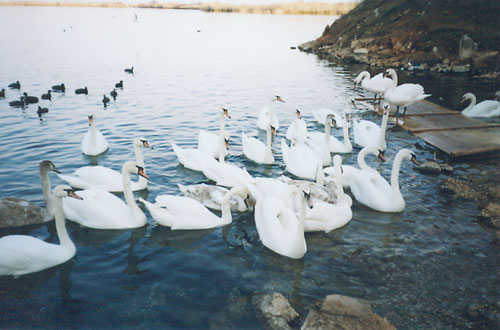 Κατάλευκοι κύκνοι, περιμένοντας την παρέα τους.